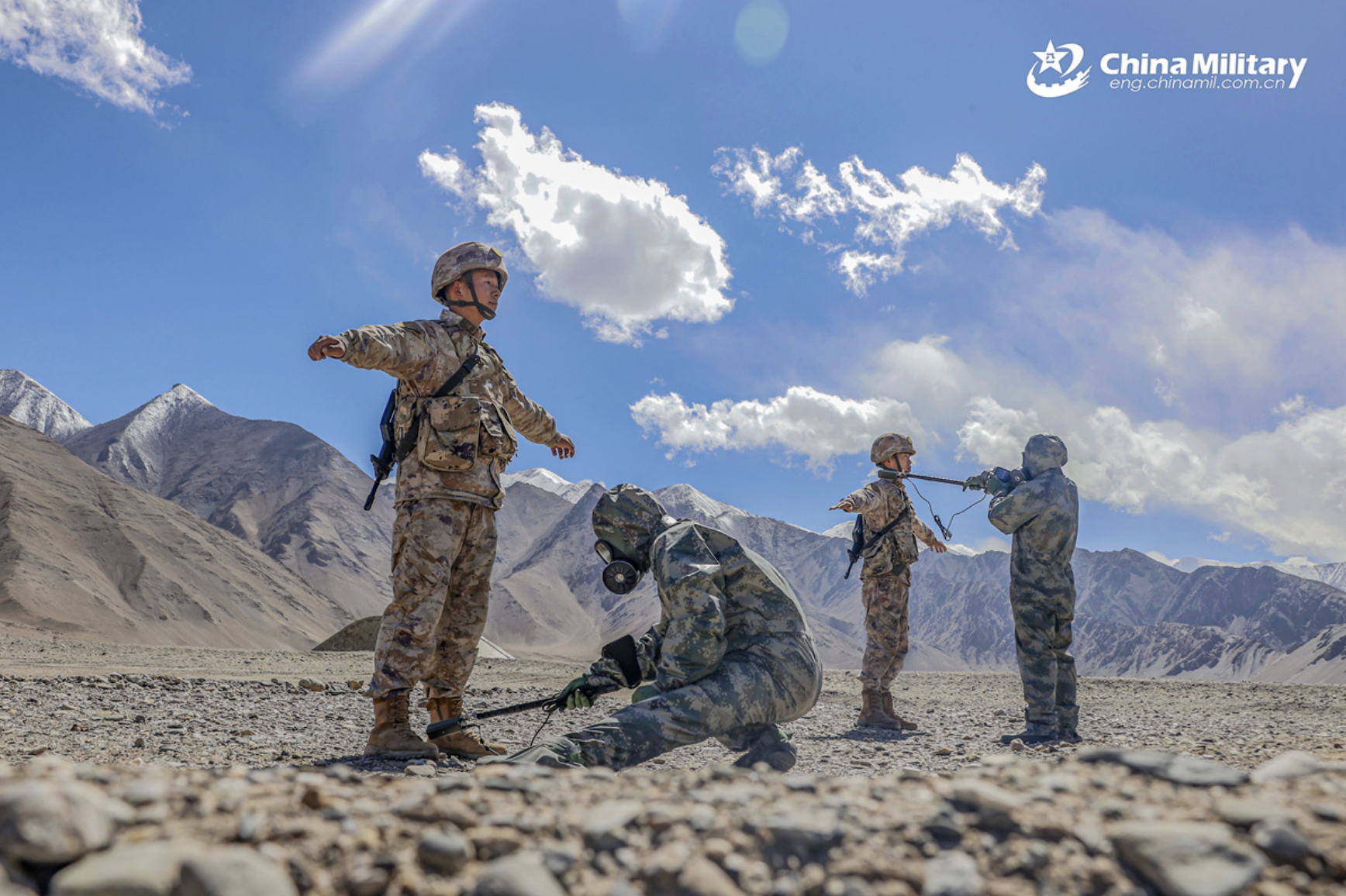 Published on Friday 27 February by China's Ministry of National Defense, the series of eight images show Chinese military personnel conducting CBRN detection, sampling and decontamination drills. The eight photos are below: