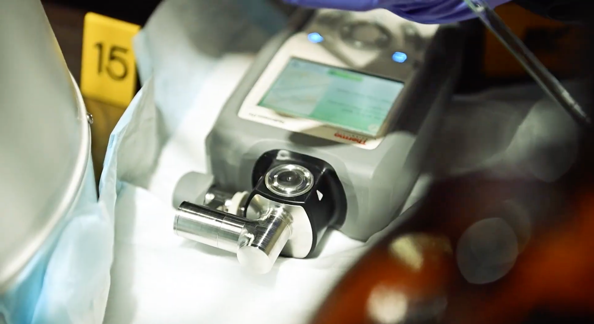 The first of two Thermo Scientific products identified in the training was the FirstDefender RMX Handheld Chemical Identification Analyser, an "all-optical Raman system designed for use by first responders, homeland security, military, law enforcement and forensic chemistry personnel".